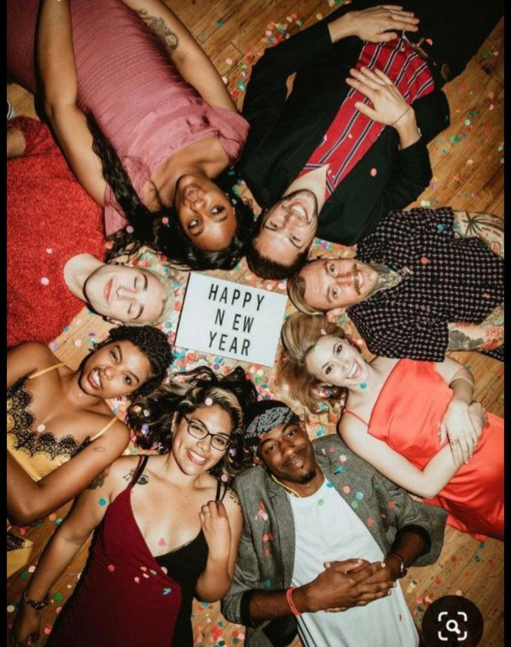 Секрет классных кадров — друзья, новогодний дресс-код, новогоднее оформление локации, не стесняться и «вспышка в лоб».