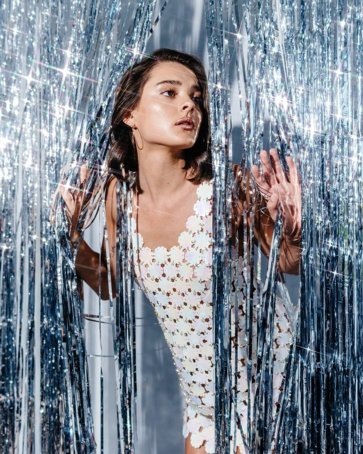 Блестки, пайетки, диско шары, дождик, перья.